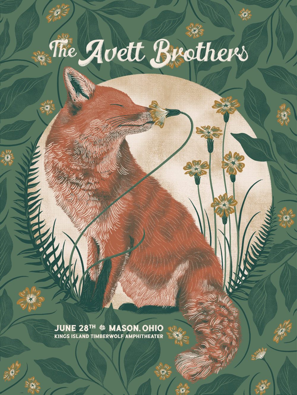 Screen printed poster commissioned by The Avett Brothers for their Mason, OH show.